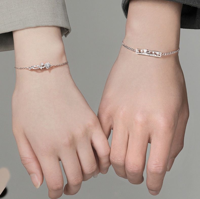 お洒落なペアブレスレットとして、それぞれ異なるモチーフを身に着けることで個性を尊重しながらも2人の繋がりを感じられるデザインです。
