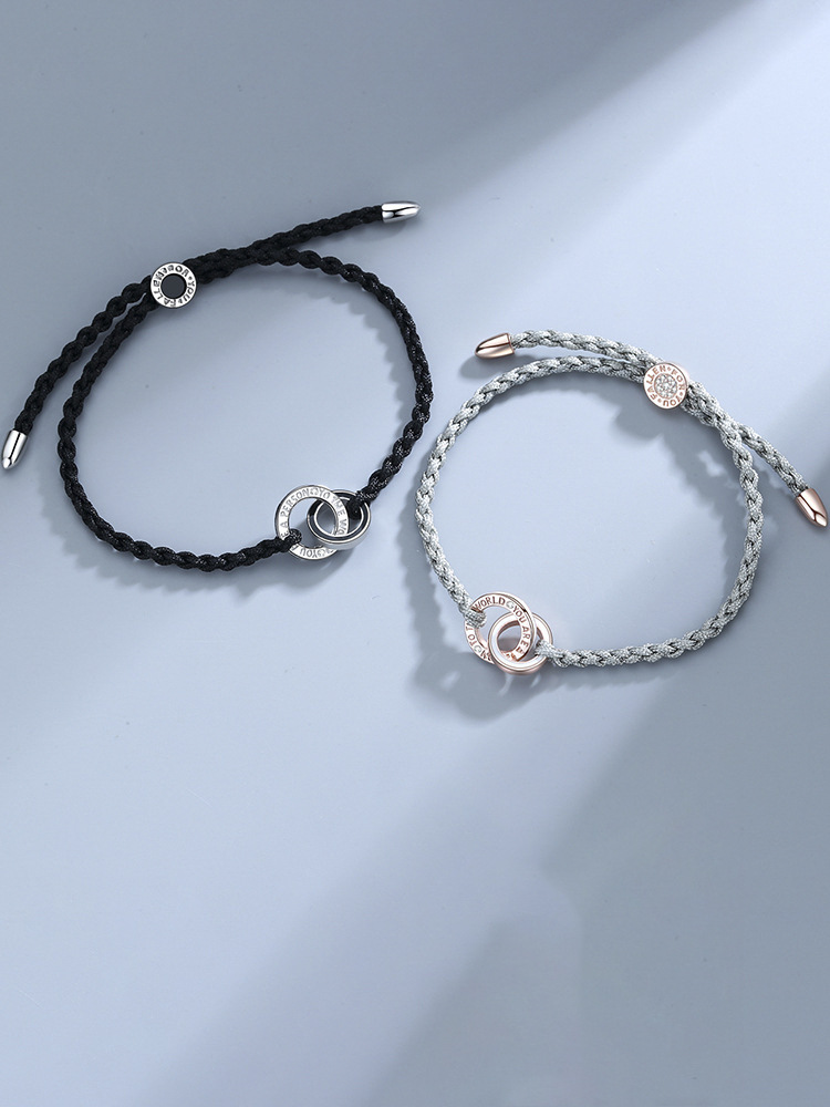 女性から男性へ絆の深さを伝えるプレゼントとして最適な二重リング編み込みブレスレットです。