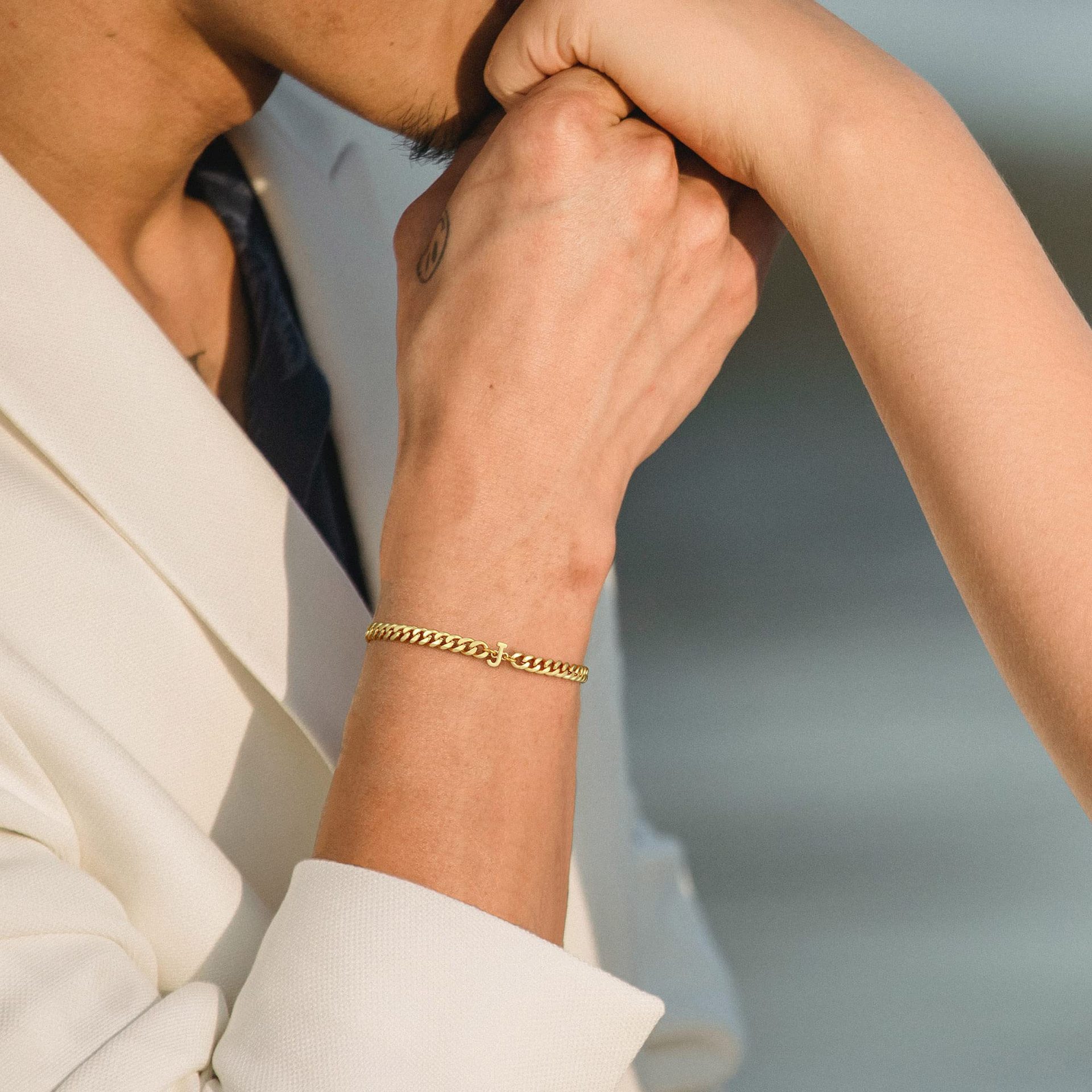 中央にイニシャルモチーフを配した特別なデザインで、大切な人とお揃いで身に着けられます。