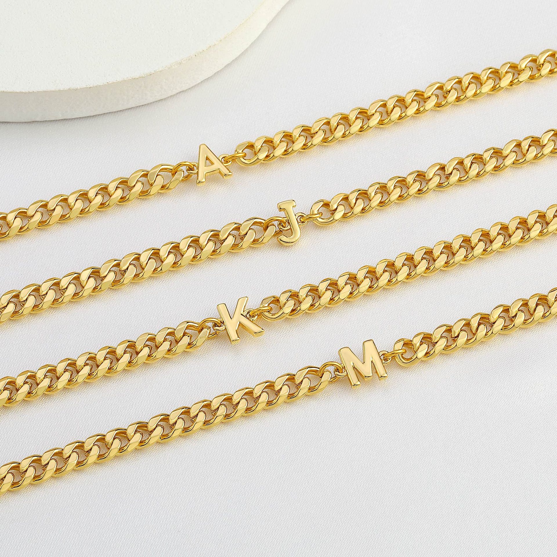 中央のアルファベットチャームがさりげないアクセントとなり、自分らしさを表現できる特別感