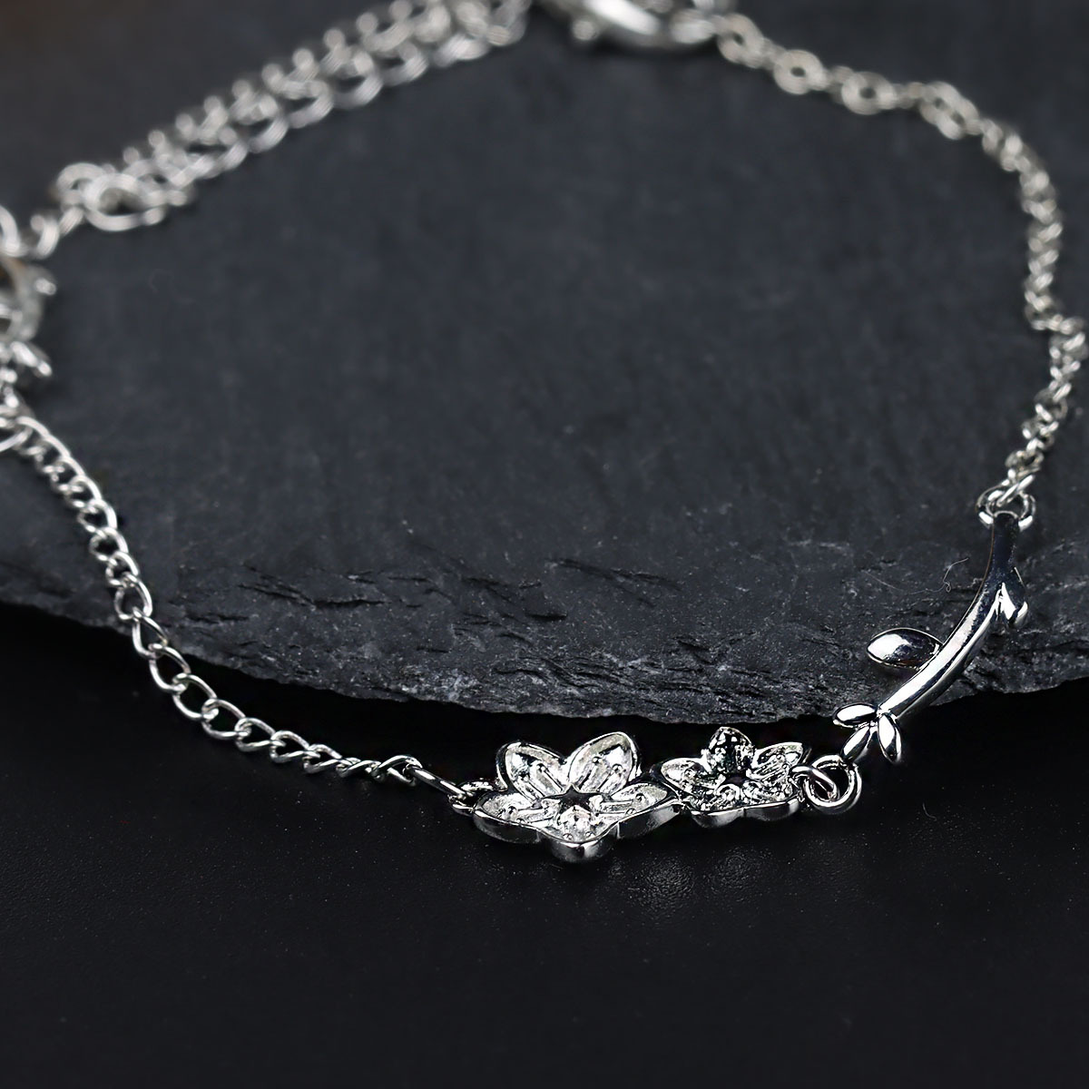 美しく輝くシルバー素材が手元を華やかに演出し、高級感のある仕上がりで洗練された印象を与えます。