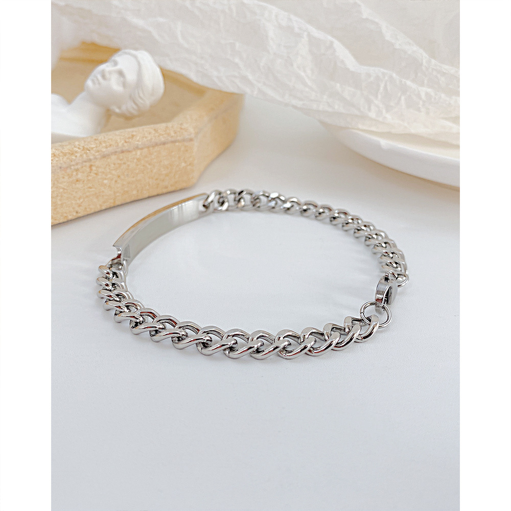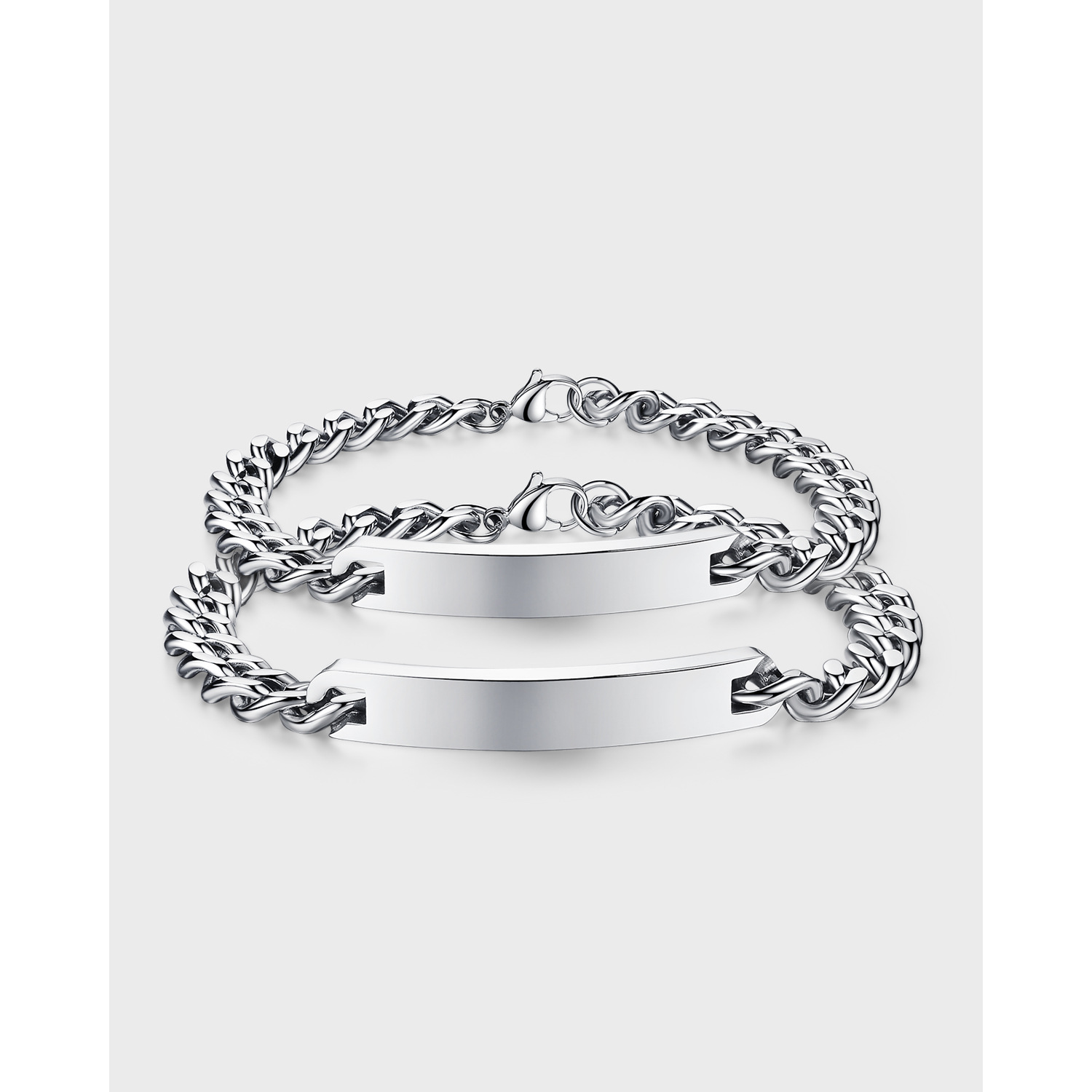 立体感のある喜平鎖チェーンにシンプルなプレートを組み合わせたペアブレスレットです。