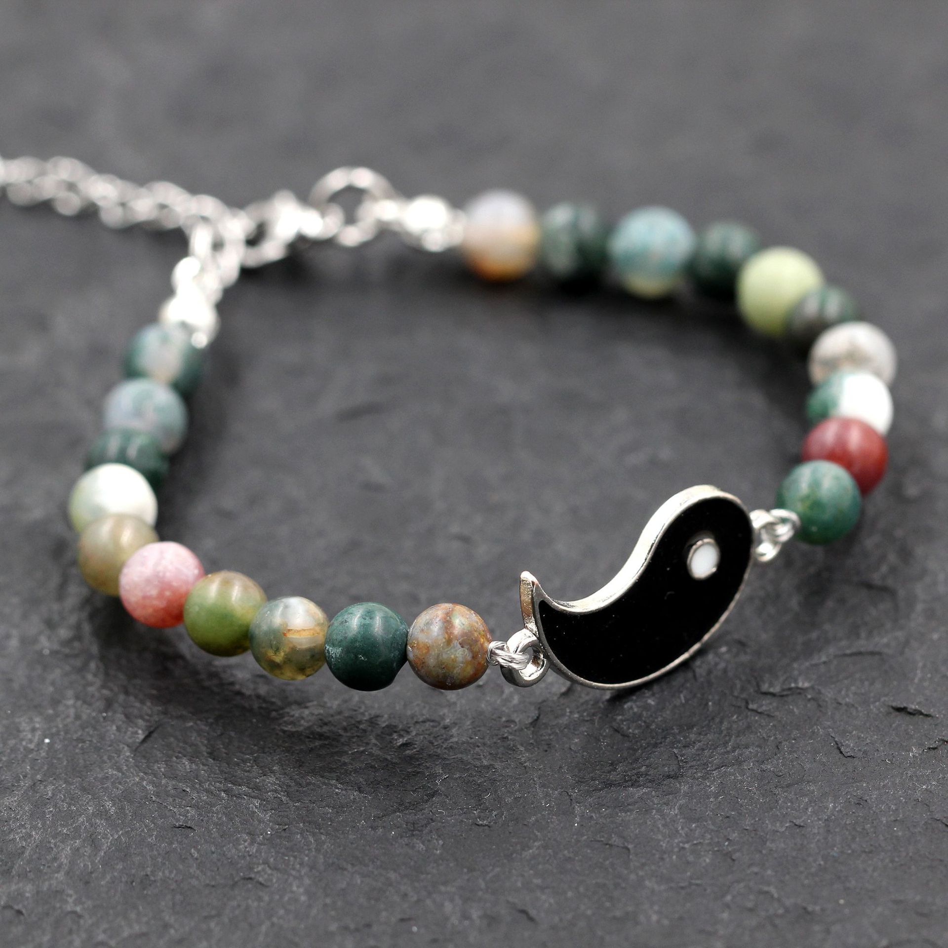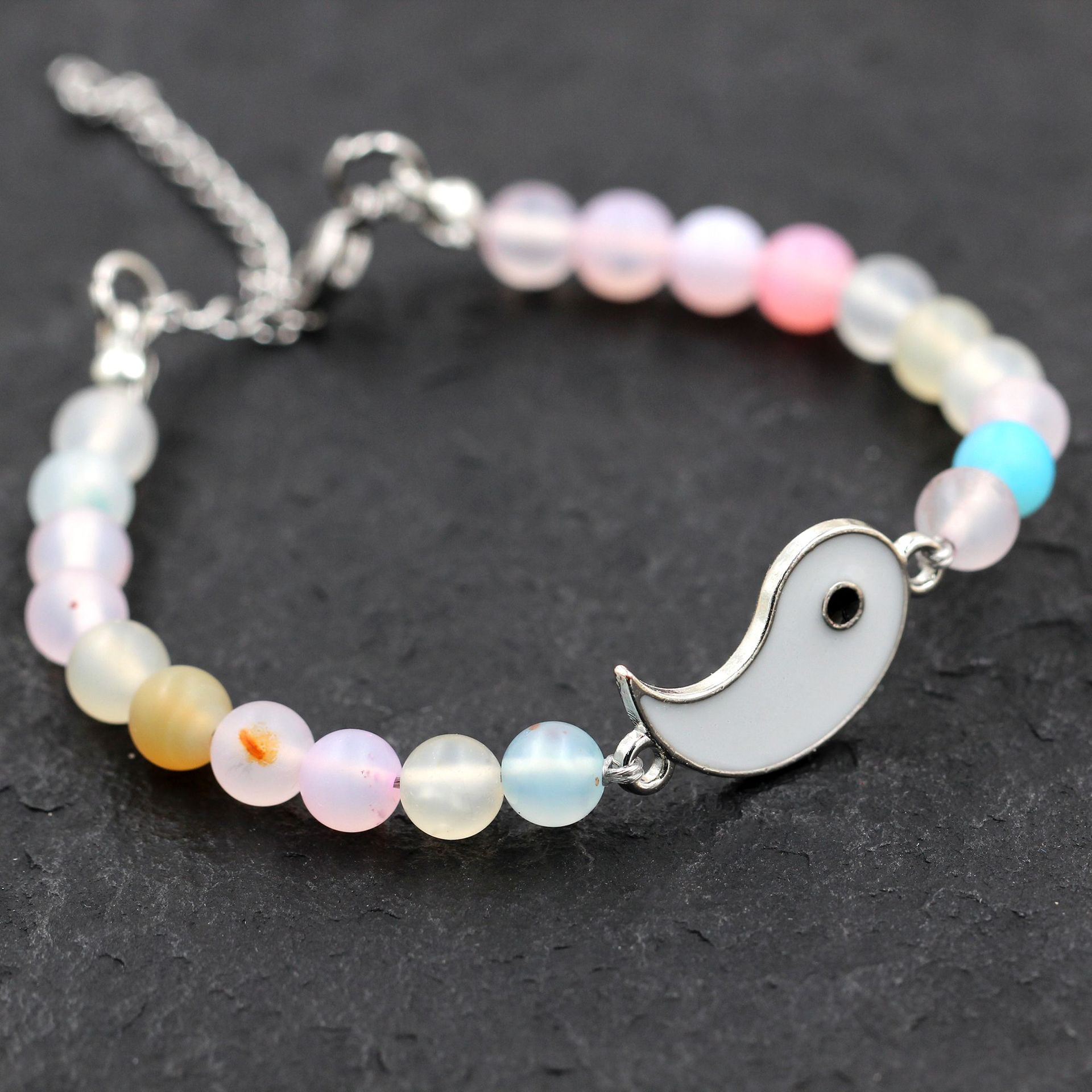 シルバーの陰陽マークチャームが全体のデザインを引き締め、調和とバランスを表現