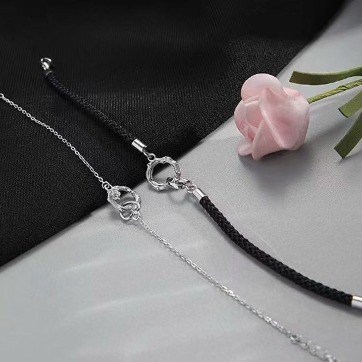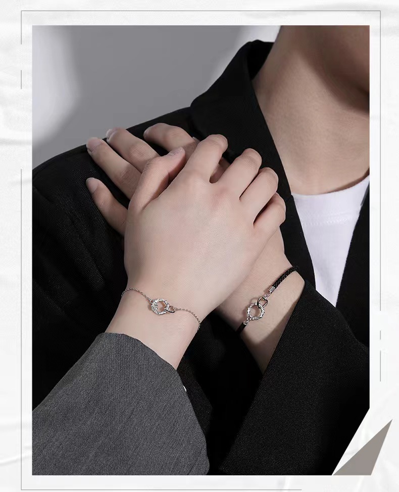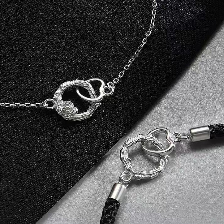 男性用は編み込みの紐タイプ、女性用は華奢なチェーンタイプで、それぞれの個性を活かしたデザインが魅力です。