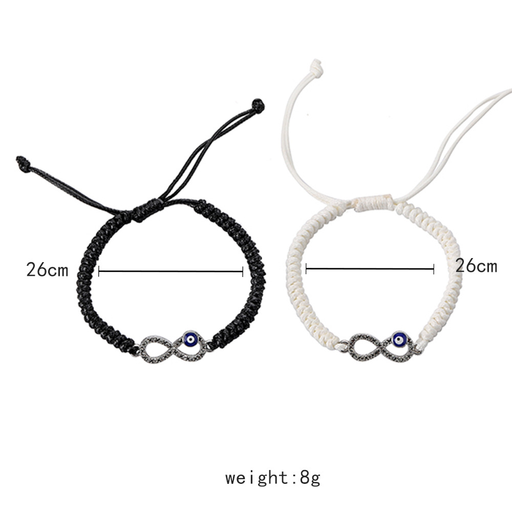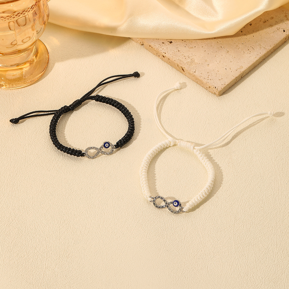永遠の絆を象徴する無限マークと魔除けの目玉モチーフが施されたペアブレスレットです。