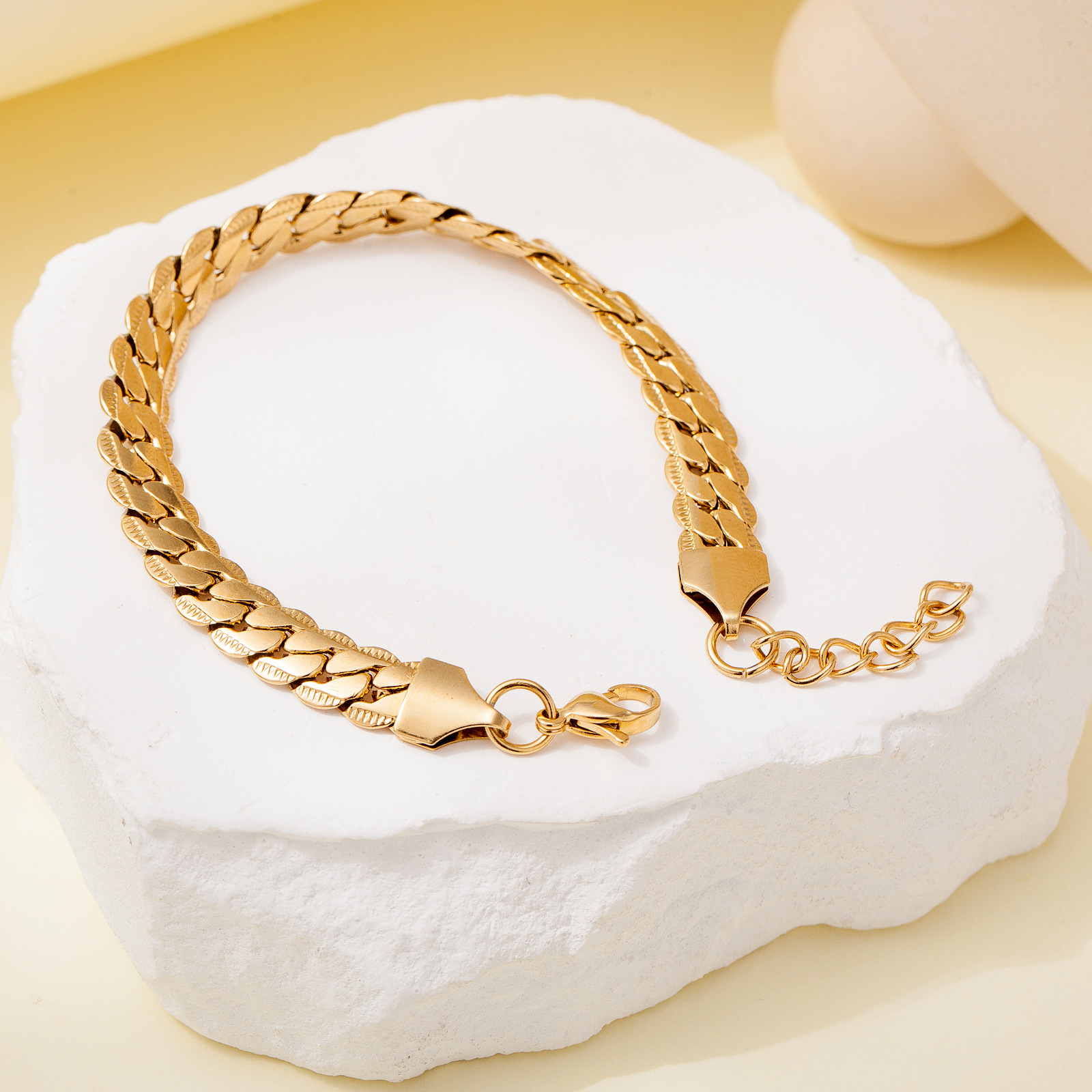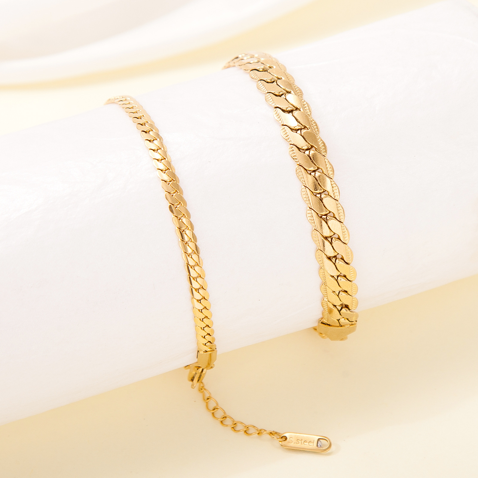 繊細な喜平チェーンを編み込んだステンレス製のペアブレスレットです。