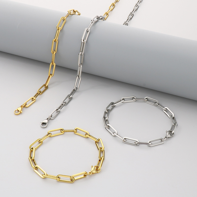 シンプルながら存在感のある長方形のチェーンデザインが魅力のペアブレスレットです。