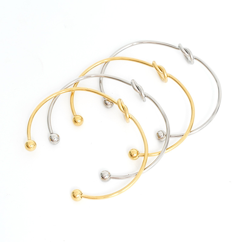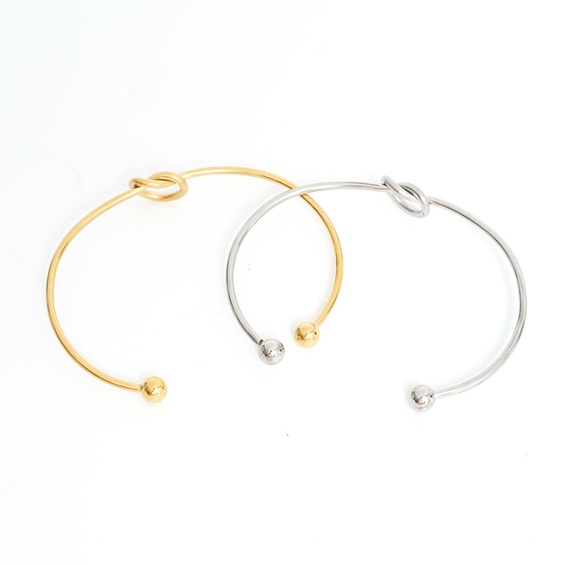 両端に丸い球体をあしらった開放型のバングルデザインで、着脱も簡単です。