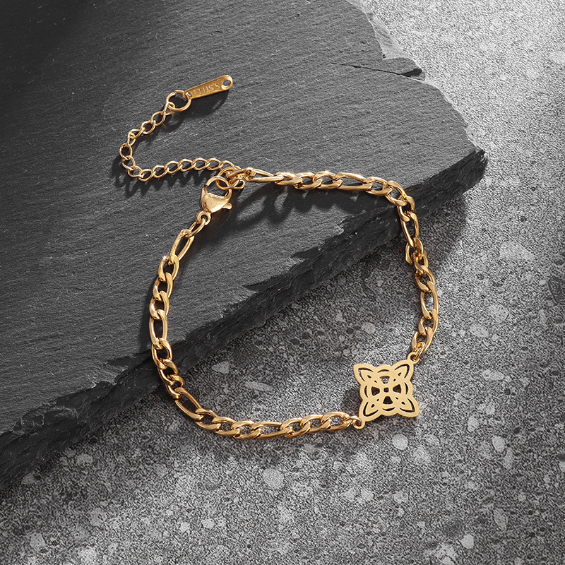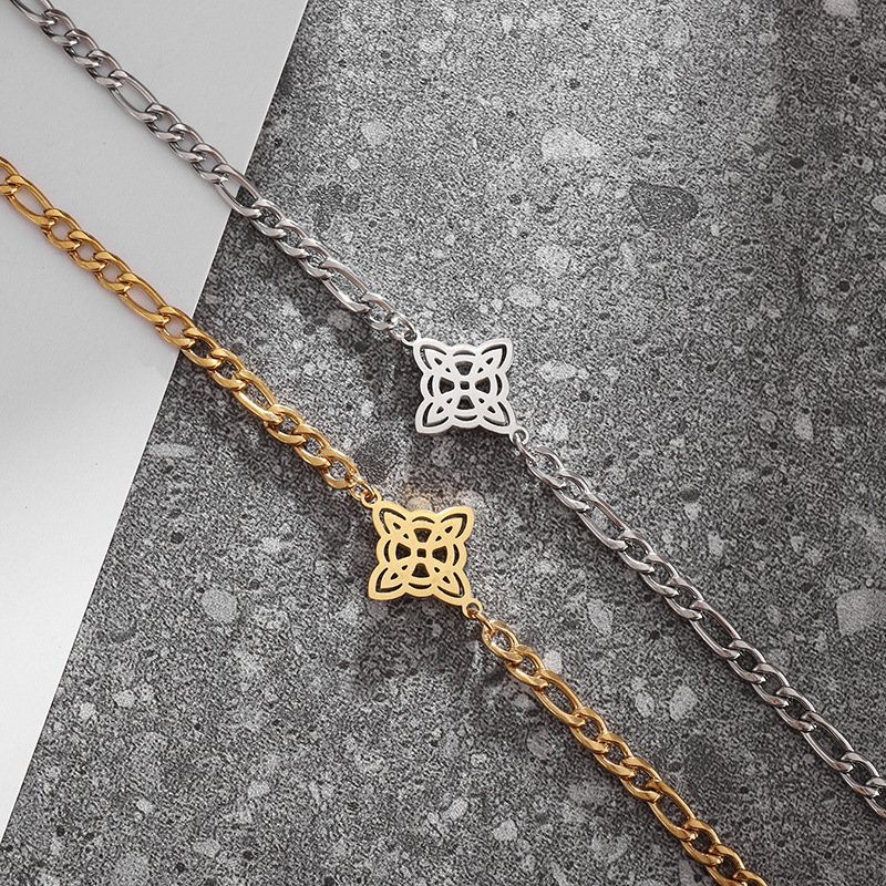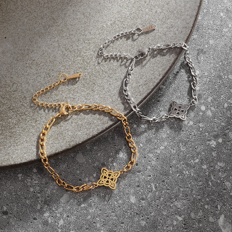 繊細な喜平チェーンに幸運を象徴する四つ葉のモチーフを添えた上品なペアブレスレットです。
