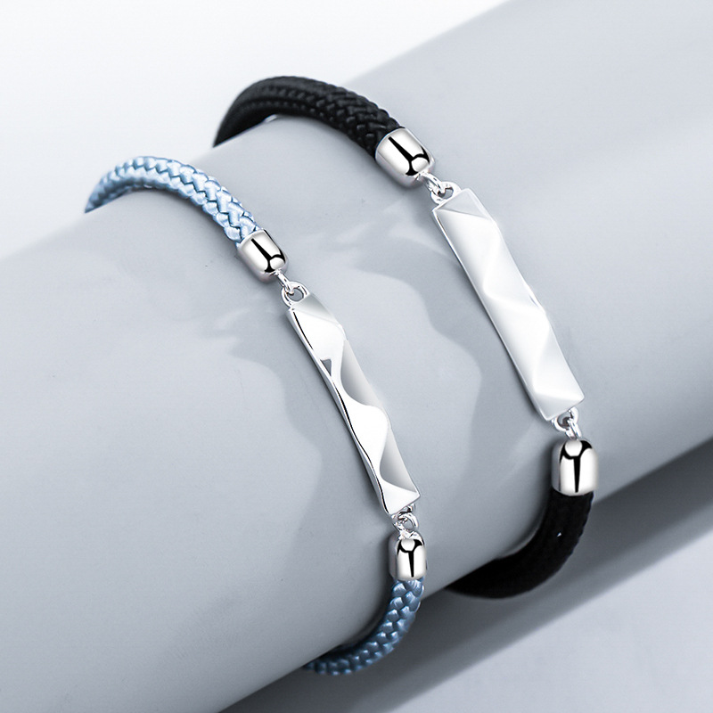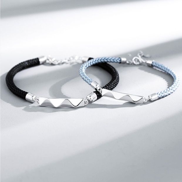 シルバーの輝きが手首を美しく彩り、二人の絆を象徴します。