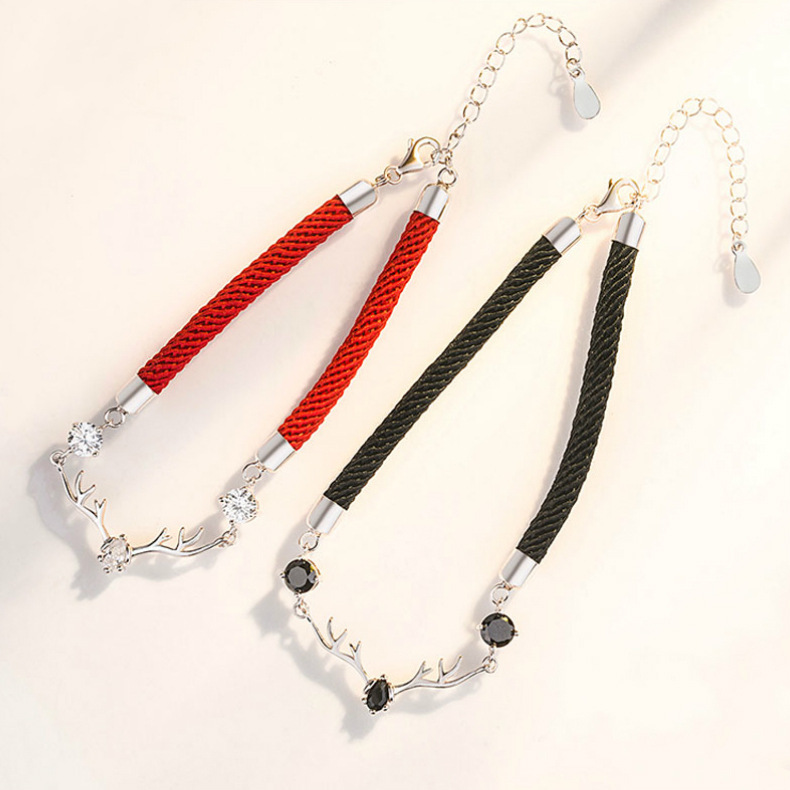 シルバー925素材の繊細なトナカイチャームに、鮮やかな編み紐を組み合わせたデザインで、カジュアルにもフォーマルにも合わせやすい一品です。