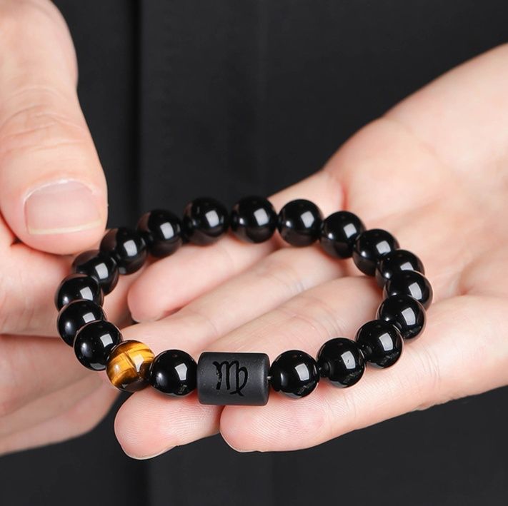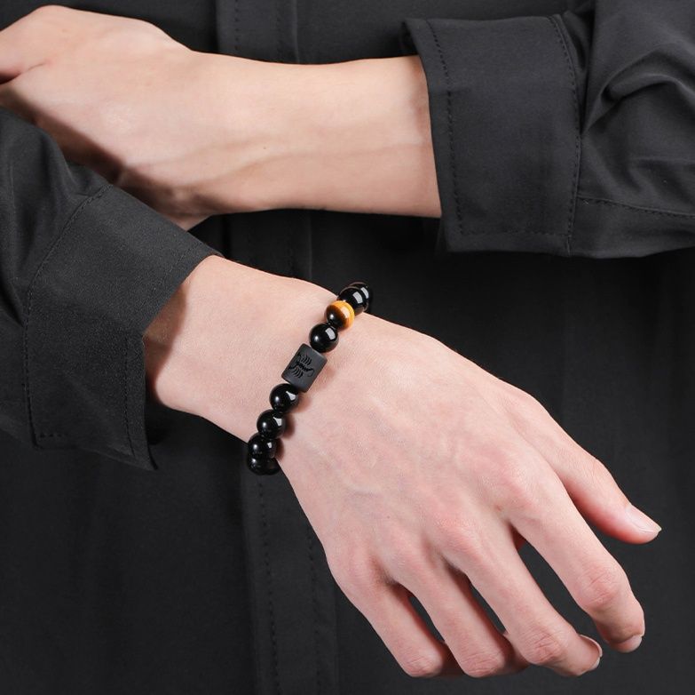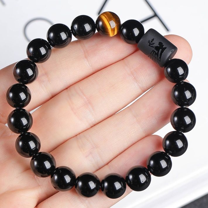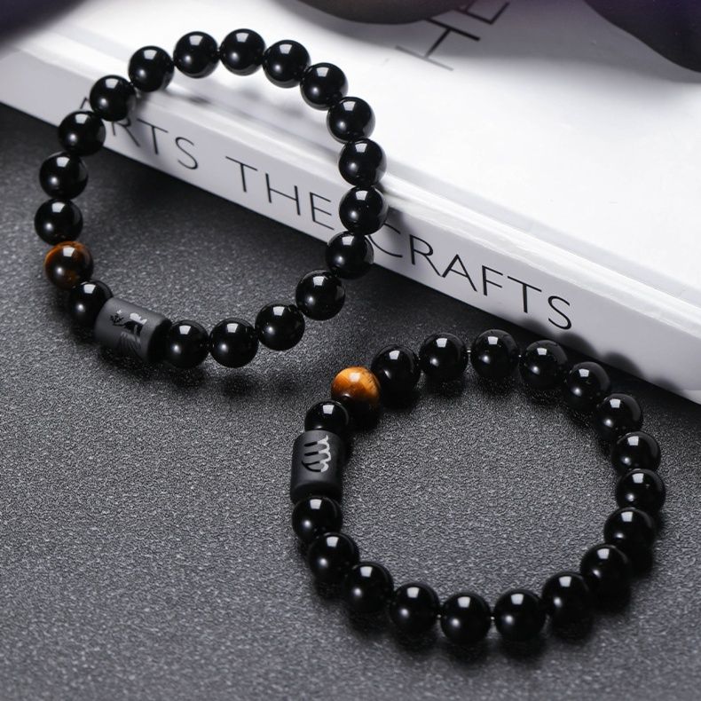 黄虎眼石と黒曜石を組み合わせた誕生日石のペアブレスレットです。