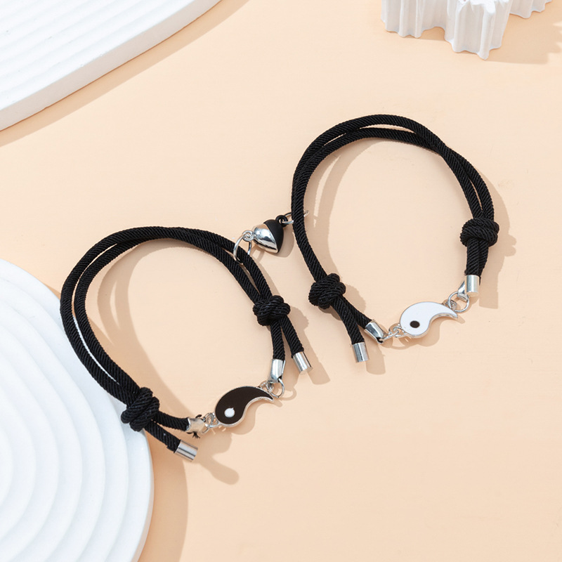 陰と陽の調和を表す太極図モチーフが特徴的なペアブレスレットです。