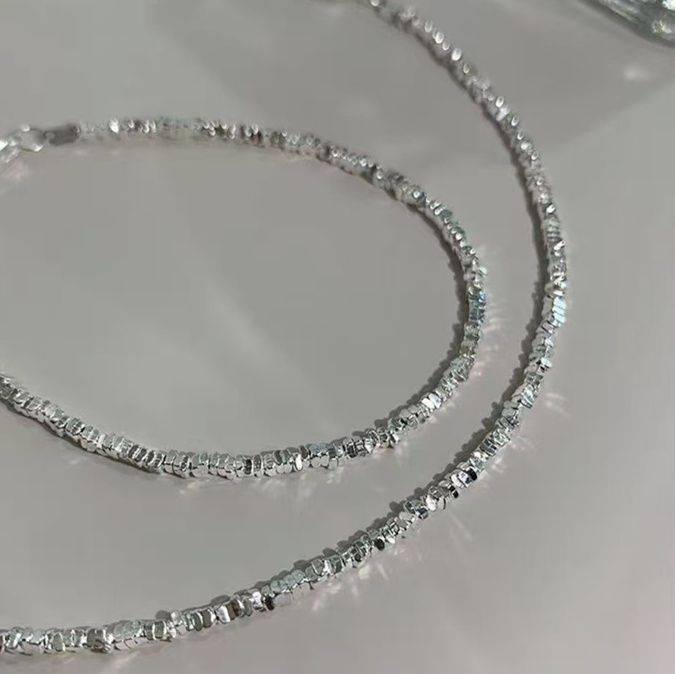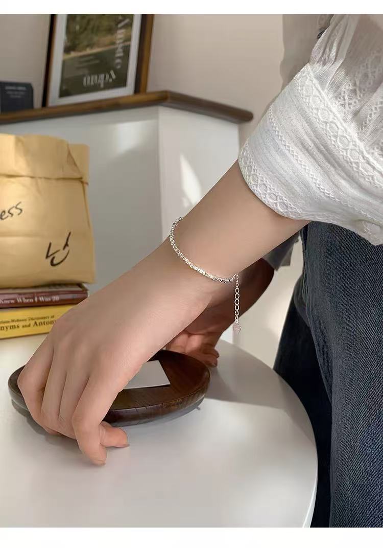 繊細な砕石加工を施したシルバーの質感が美しいペアブレスレットです。
