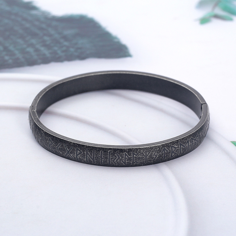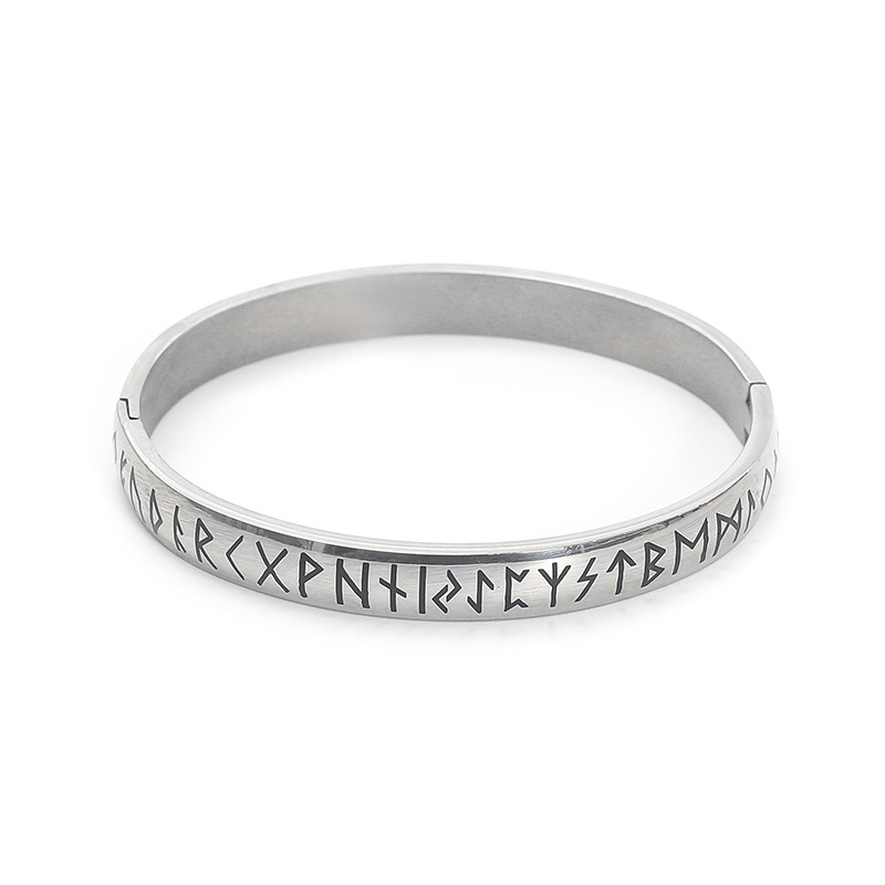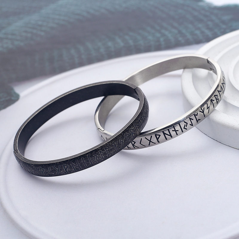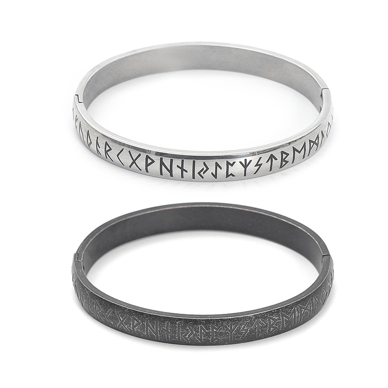神秘的な古代ルーン文字を表面に刻印したバングル型のペアブレスレットです。