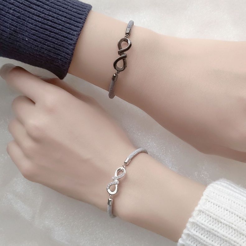 永遠の愛を象徴する無限大モチーフが美しく輝くペアブレスレットです。