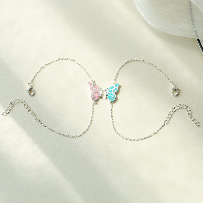繊細な蝶々のモチーフが手首を優雅に彩るペアブレスレットです。