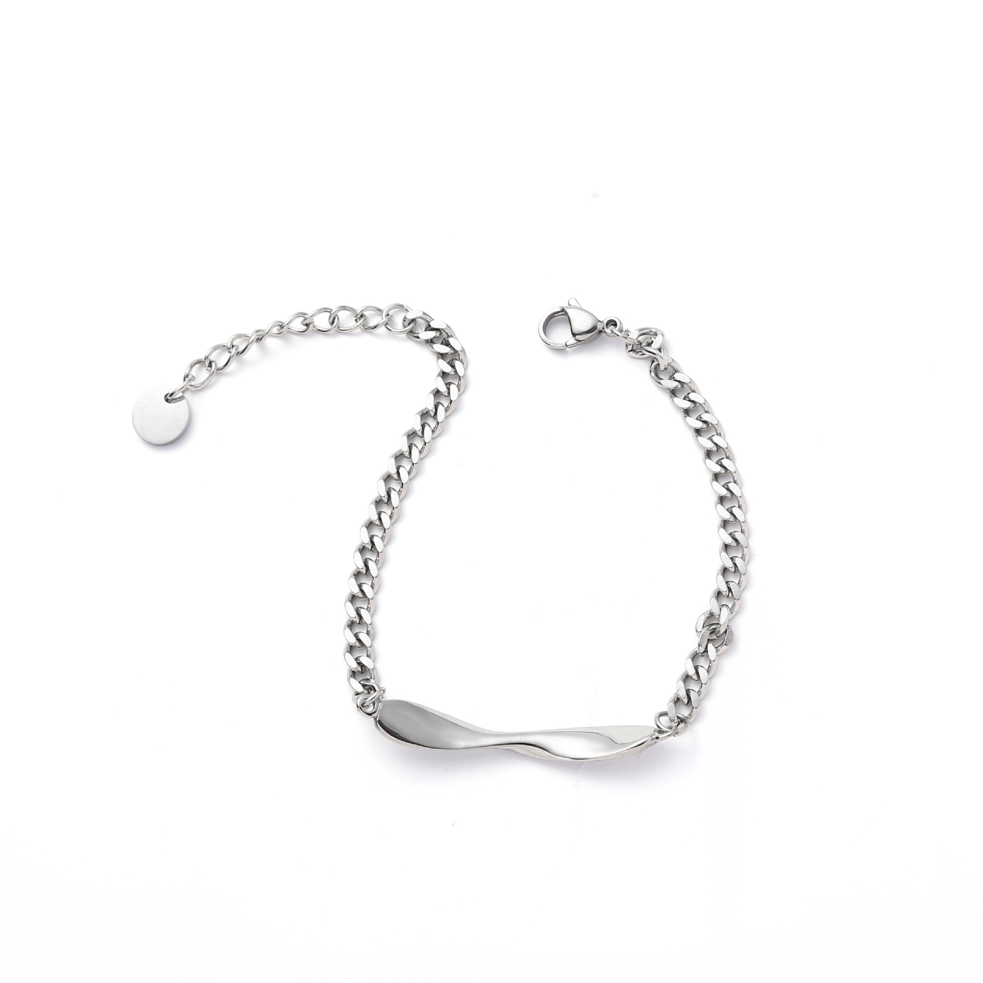 チェーンとプレートの異なる質感の組み合わせで、重ね付けスタイルを楽しめる遊び心あるデザインです。