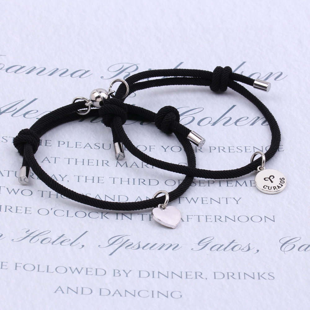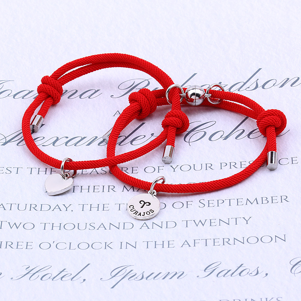 大切な人との絆を深めるペアブレスレットです。ステンレス製のハート型チャームが可愛らしく、丈夫な組紐が手首を優しく彩ります。