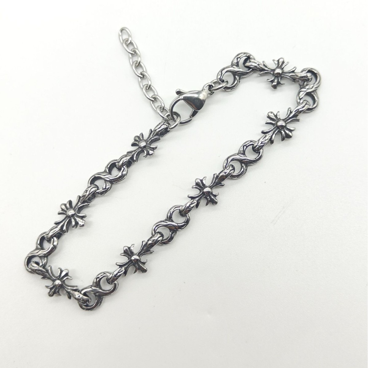 編み込まれたチェーンデザインと十字架が交互に配置され、重厚感のある仕上がりになっています。
