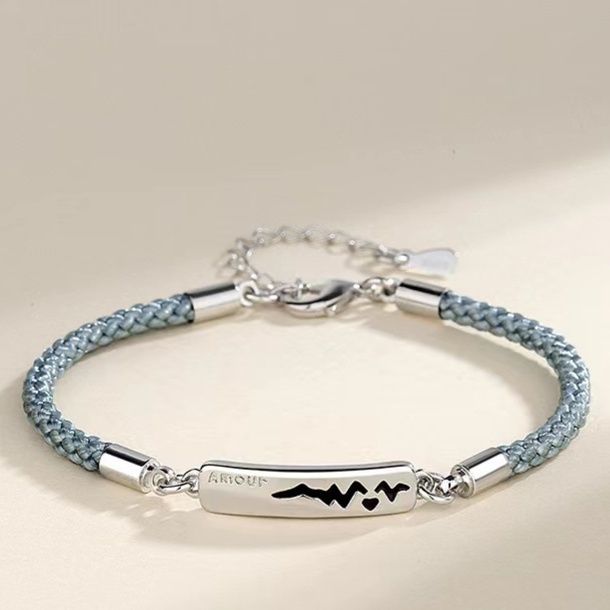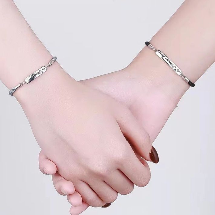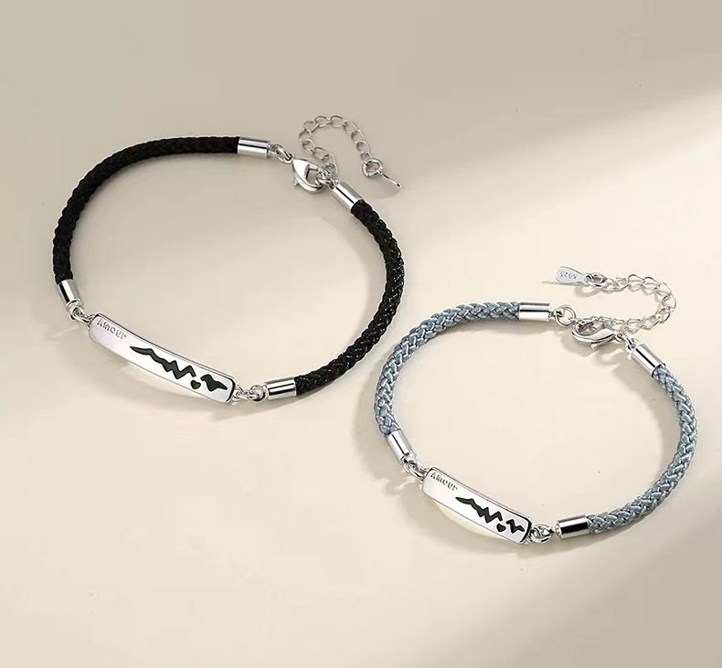 シルバーのプレートに心電図モチーフが刻まれた、特別な絆を表現するペアブレスレットです。