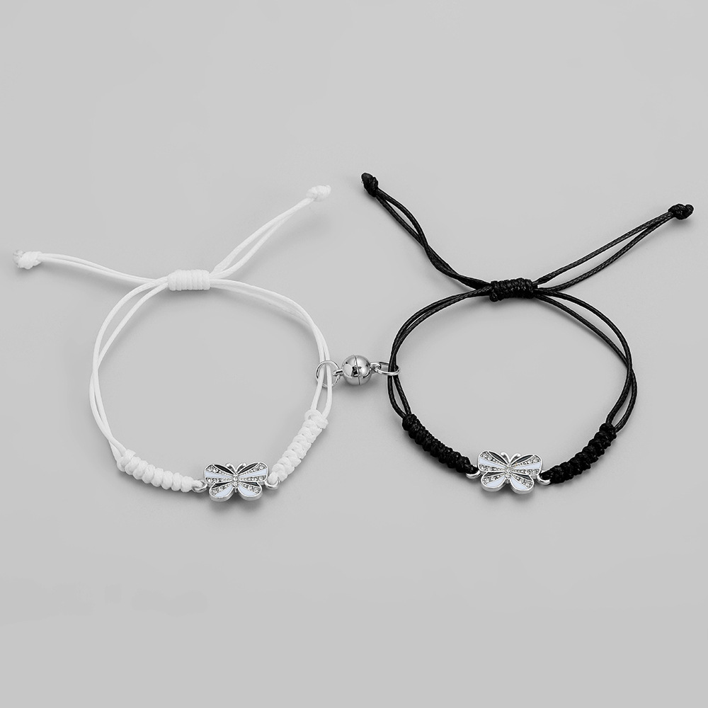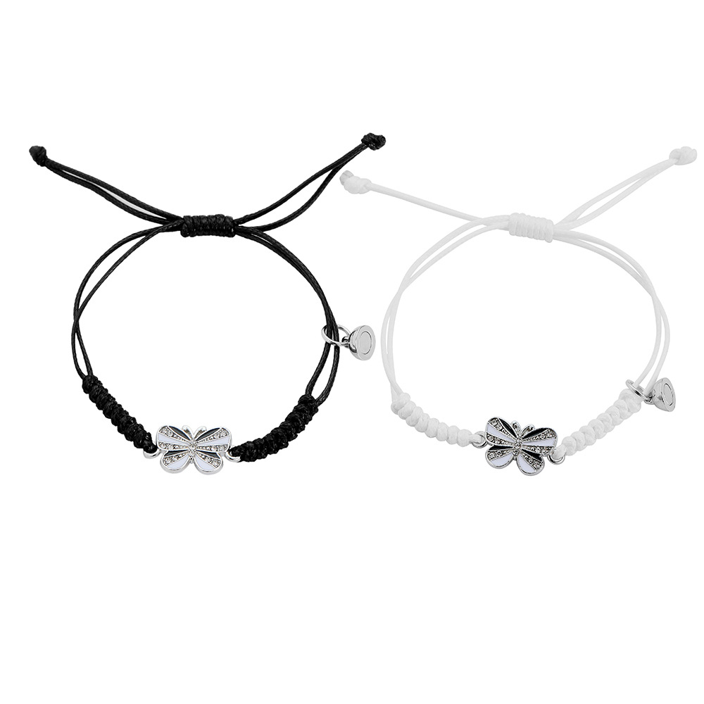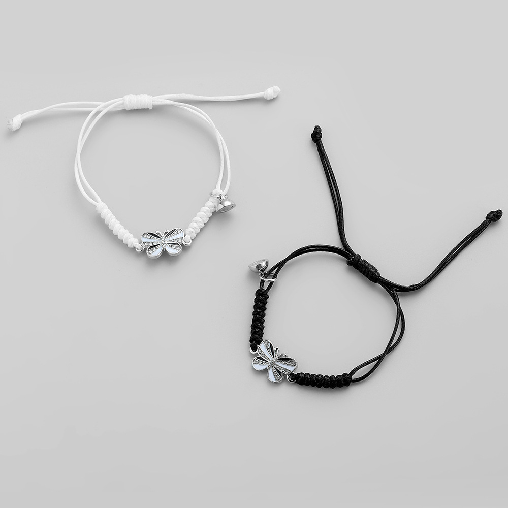 白と黒の対照的な紐に同じシルバーチャームが付いているためペアアクセサリーとしても最適です。