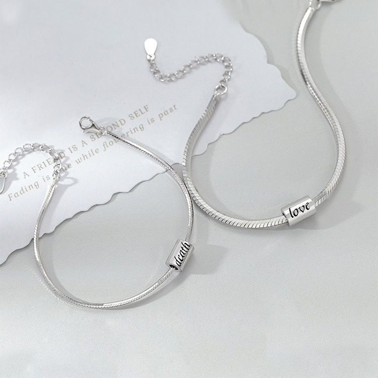 大切な人との絆を表現するシルバー素材のペアブレスレットです。