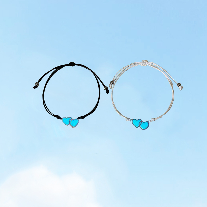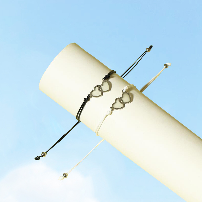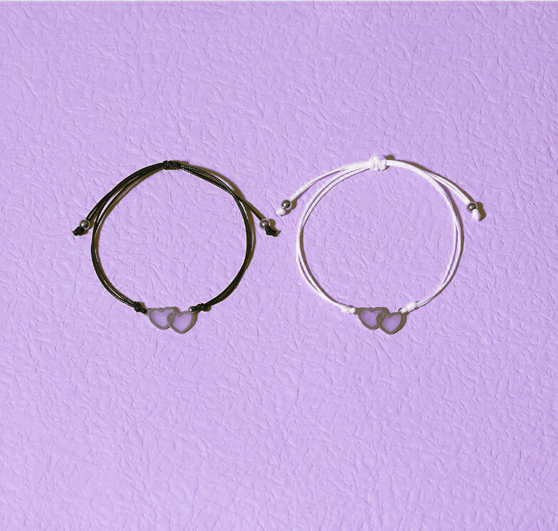 二つ寄り添うハートモチーフが愛らしいペアブレスレットです。