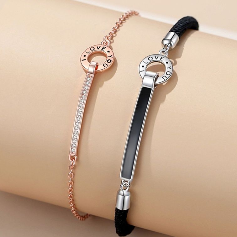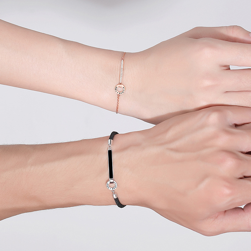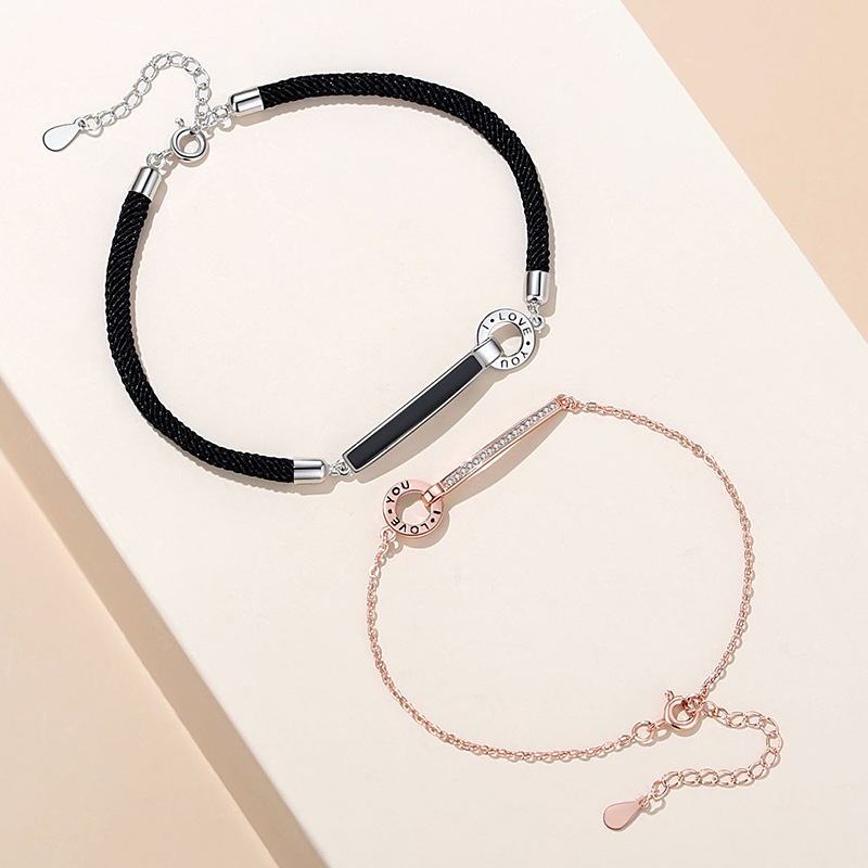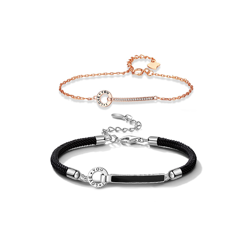 細身の鎖と編み込みの紐の二種類の異なる素材を使用し、男女それぞれの個性を引き立てます。