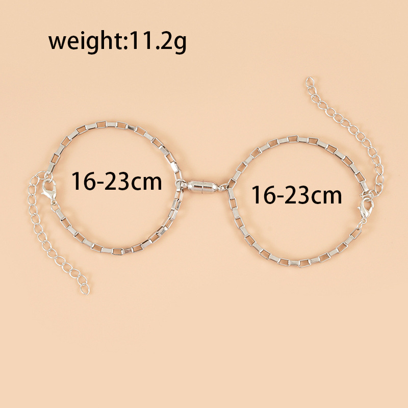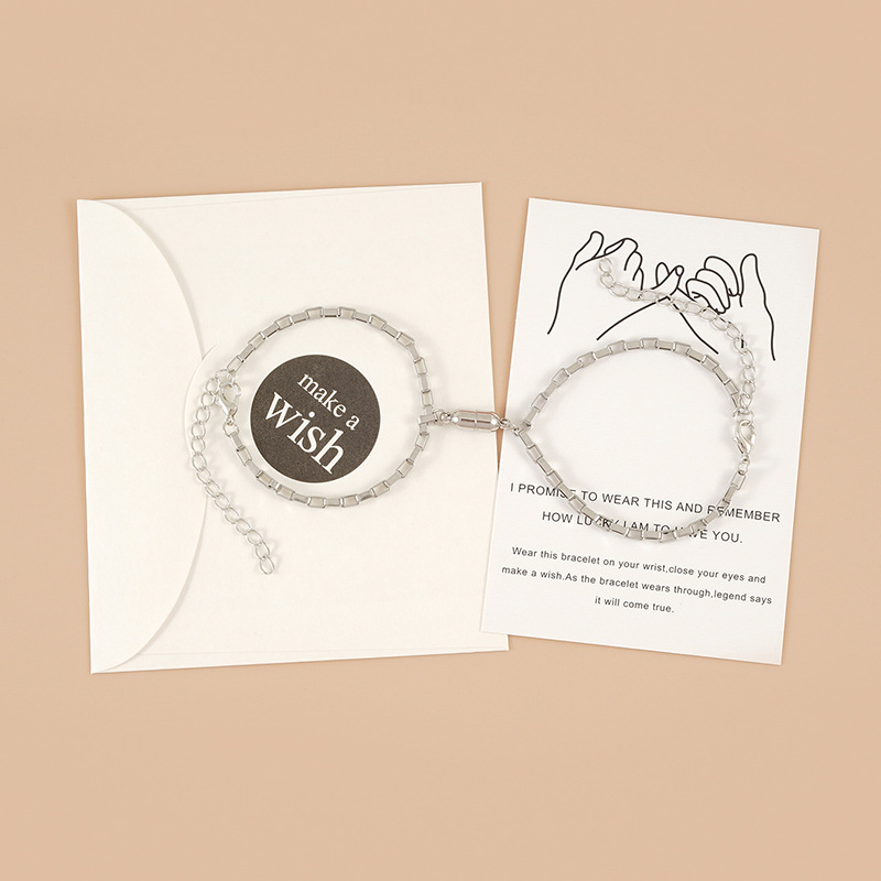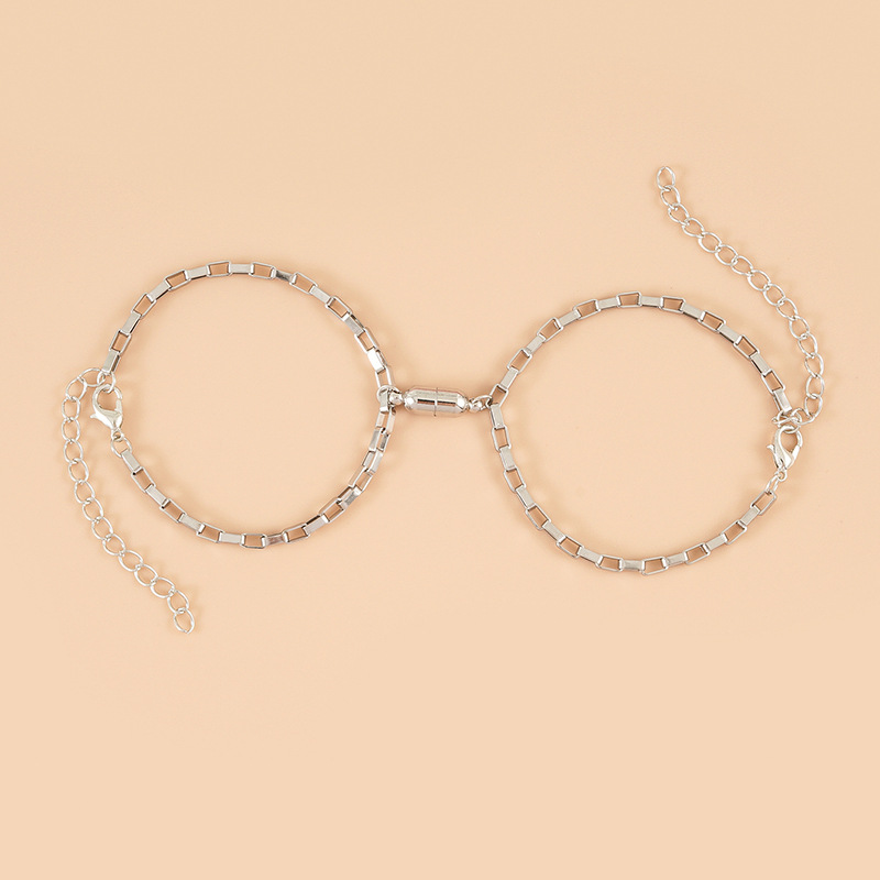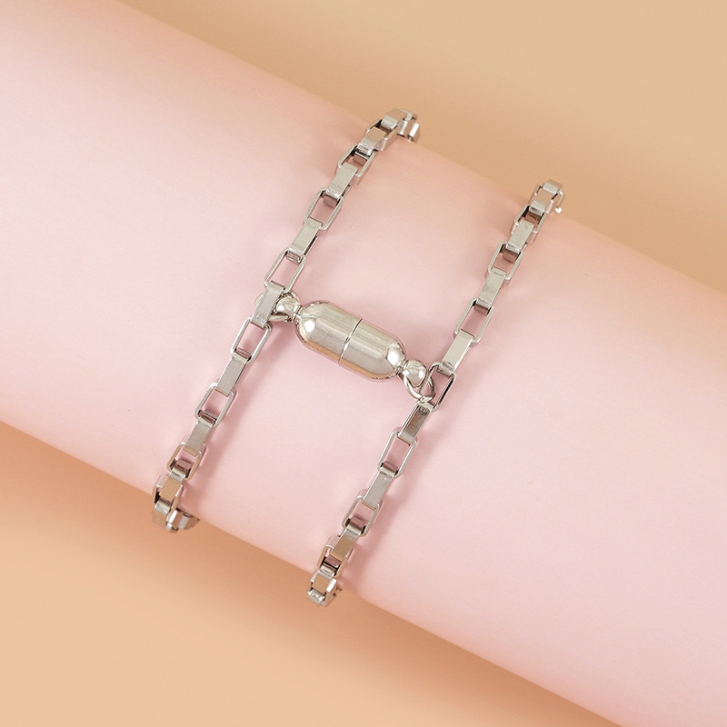 四角い箱型のコマを繋いだシンプルで洗練されたペアブレスレットです。