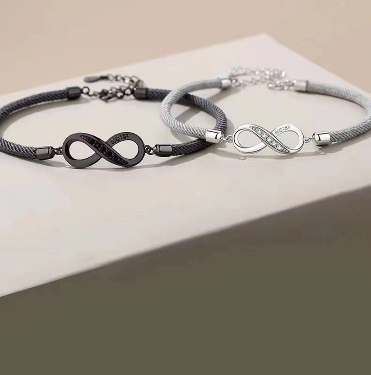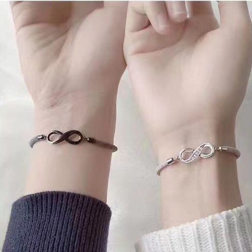 永遠の愛を象徴する無限大のモチーフが美しいシルバー素材のペアブレスレットです。