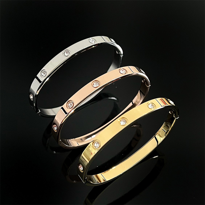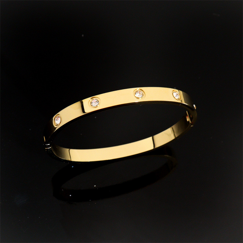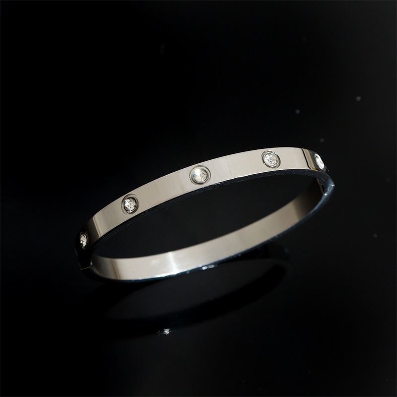 なめらかな鏡面仕上げとスタッズデザインが上品な煌めきを生み出し、洗練された印象を与えます。