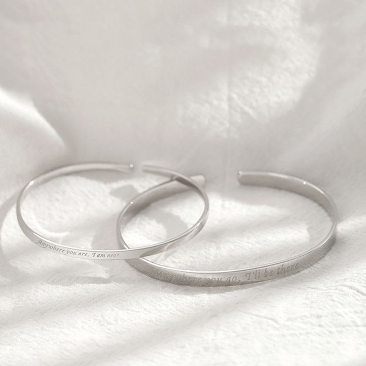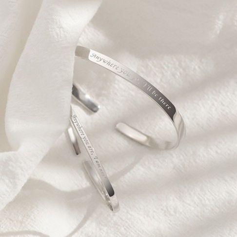 シルバー素材の繊細なバングルタイプで、手首を上品に彩ります。