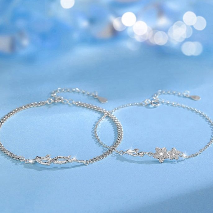 繊細な雪の結晶モチーフが愛らしいペアブレスレットです。