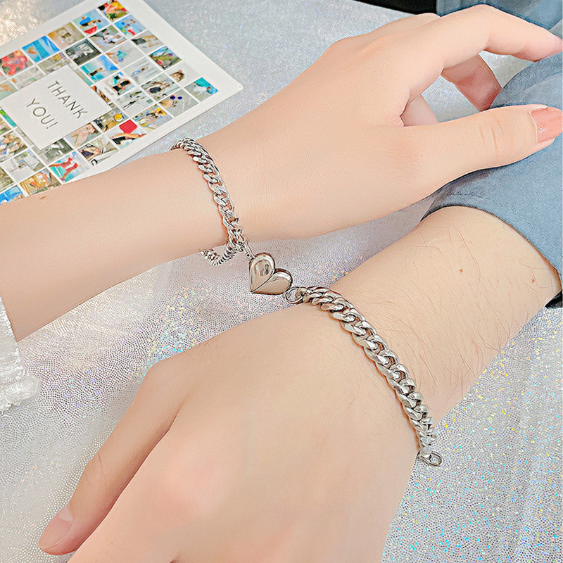 喜平チェーンデザインが洗練された印象を与えるペアブレスレットです。