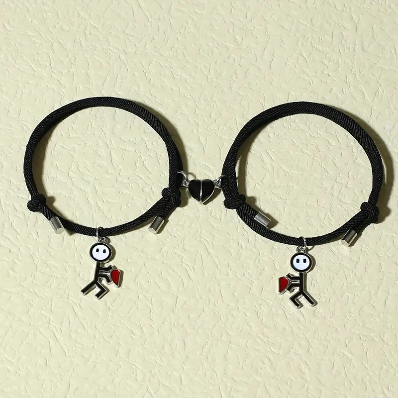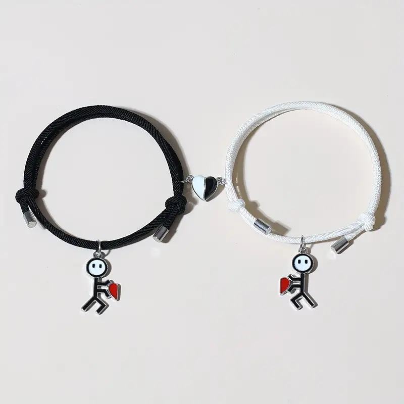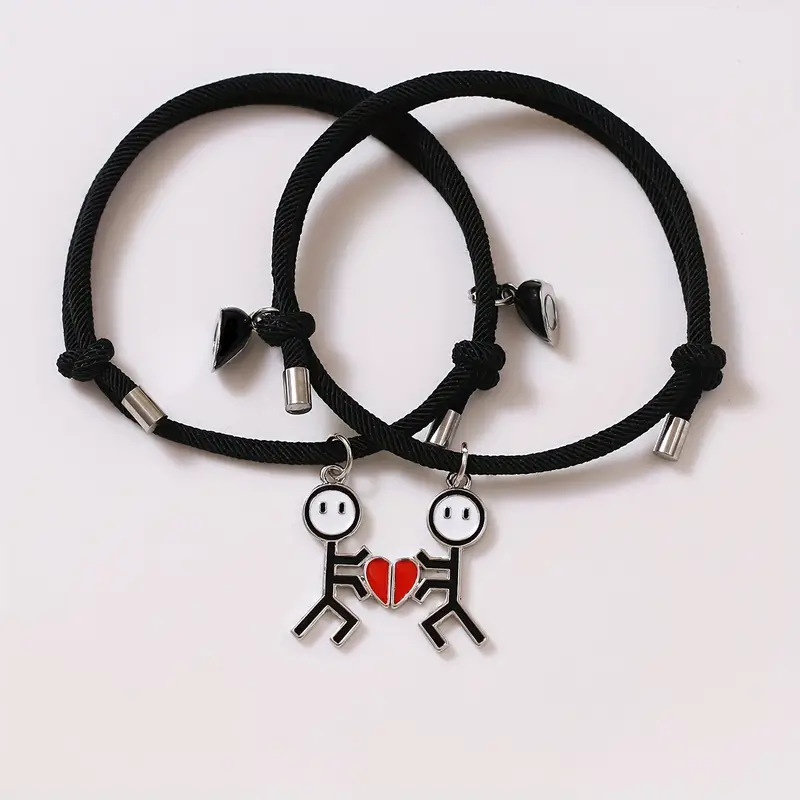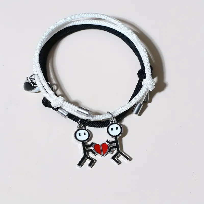 可愛らしい人型チャームとハート型磁石が特徴的なペアブレスレットです。